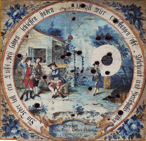 Historische Schießscheibe von 1765 aus dem Archiv der Schützengesellschaft Kronach.