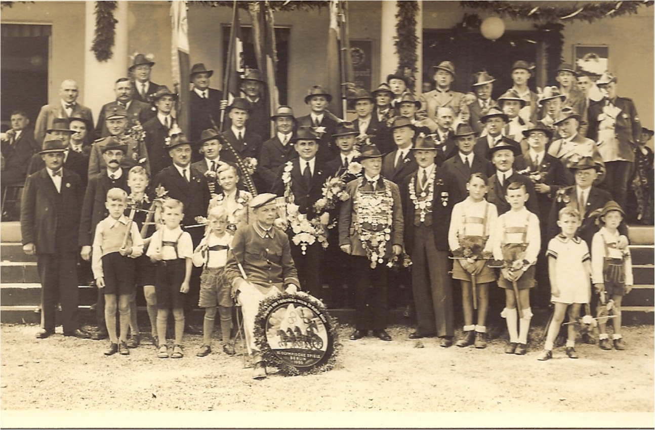 Schützenauszug 1936: die Nordbrücke war noch nicht gebaut, der Festzug ging noch über die Bahngeleise. Peter Schramm war der Oberzieler, Es wurden drei Fahnen getragen: die der Schützengesellschaft, die alte Fahnen des Freikorps (von 1849) und die Fahne des „Reichsbundes für Leibesübungen“. Schützenkönig 1935/36 war Dr. Gustav Köhler, der Vogelkönig war Josef Scheler. Es spielte das Infanterie-Regiment 42 Bayreuth, Stabsmusikmeister Weiß. Ach ja: der Liter Festbier kostete 0,65 Reichsmark
